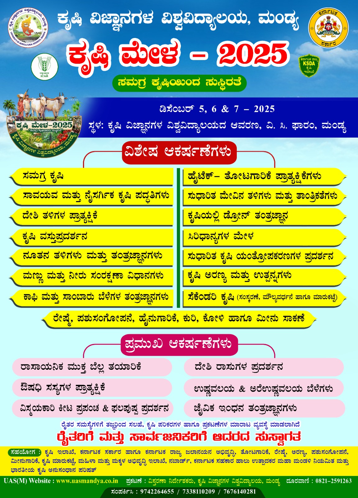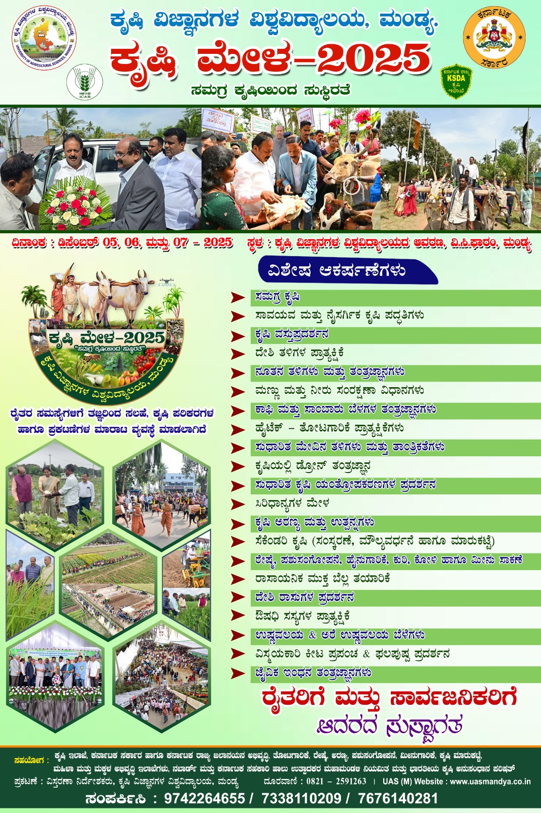 At the University of Agricultural Sciences, Mandya (UAS Mandya), we embrace the transformative power of knowledge, regional empowerment, and sustainable farming. Rooted in the rich agricultural legacy of the Old Mysuru region, our university aspires to be a catalyst for a new era of innovation and inclusive growth in agricultural education, research, and outreach.